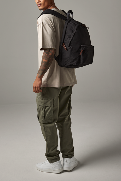A hátizsák strapabíró poliészterből készült, DTF nyomattal vagy hímzett logóval díszítve.
